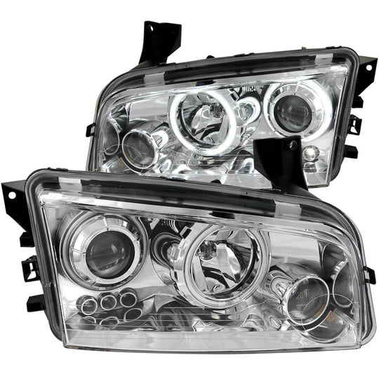 ANZO 2006-2010 Dodge Charger Projector Headlights w/ Halo Chrome