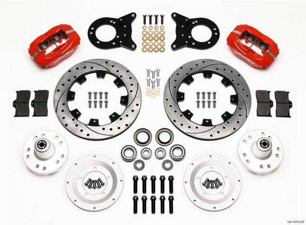 Wilwood Forged Dynalite Front Kit 11.00in Drill Red 1970-1973 Mustang Disc & Drum Spindle