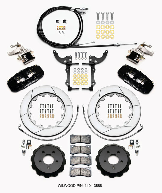 Wilwood AERO4 / MC4 Rear Kit 14.00 Drilled 2015-Up Mustang w/Lines & Cables