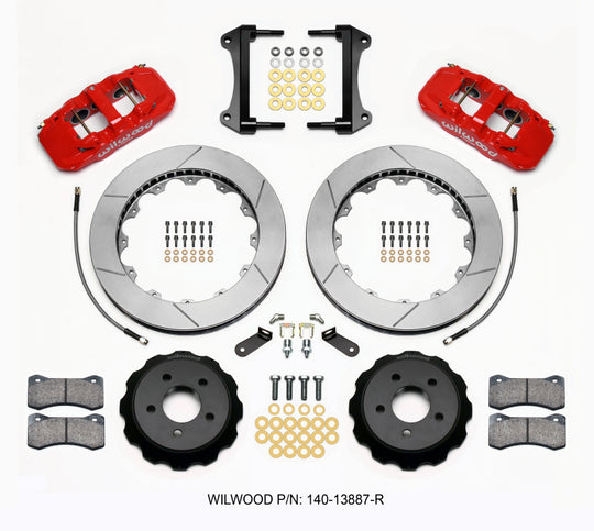 Wilwood AERO4 / MC4 Rear Kit 14.00 Red 2015-Up Mustang w/Lines & Cables