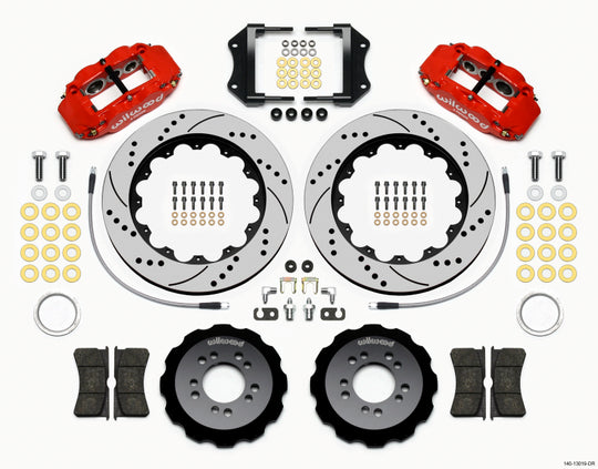 Wilwood Narrow Superlite 6R Front Hat Kit 14.00in Drill Red 2013-Up Ford Focus ST w/ Lines