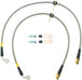 StopTech Stainless Steel Braided Brake Lines provide a quicker, firmer, more consistent pedal response by maintaining consistent brake pressure. Additionally, stainless steel lines provide precision brake modulation, especially during threshold braking. The improvement in pedal feel is more dramatic on older vehicles where the factory rubber line may have softened and swelled due to age. A variety of end fittings are available to meet application needs. All fittings are engineered for proper fit and durability. All necessary brackets and fasteners are included with each line kit.