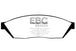Designed for premium street driving offering better brake effect up to 600-degrees C (1100-degrees F). EBC Greenstuff has a high initial brake effect and gives drivers confidence from first application of the brake pedal. There is no such thing as a NO DUST pad. The very nature of how a brake works requires that some dust be generated to avoid rotor vibration (shimmying). The EBC pad creates less dust and dust is more easily washed off than most. All pads create more dust as they are bedding in especially if rotors are worn. Nominal friction coefficient 0.55. For heavier faster cars and vehicles above 200bhp we strongly recommend Redstuff which DOES offer much less dust.