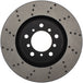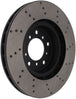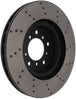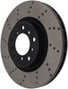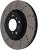 StopTech Drilled Sport Rotors are 1-piece direct replacement brake discs for factory brake systems and stock calipers that look great behind your wheels – and offer significantly improved braking performance. The unique cross-drilling aids with heat and brake dust dispersal, prevents glazing of the pads, adds bite and improves wet and dry braking performance. Built to last, the black e-coating provides protection from corrosion and the high carbon metallurgy (in most applications) offers quieter operation, better crack resistance and increased performance.