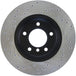 StopTech Drilled Sport Rotors are 1-piece direct replacement brake discs for factory brake systems and stock calipers that look great behind your wheels – and offer significantly improved braking performance. The unique cross-drilling aids with heat and brake dust dispersal, prevents glazing of the pads, adds bite and improves wet and dry braking performance. Built to last, the black e-coating provides protection from corrosion and the high carbon metallurgy (in most applications) offers quieter operation, better crack resistance and increased performance.
