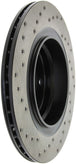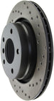 StopTech Drilled Sport Rotors are 1-piece direct replacement brake discs for factory brake systems and stock calipers that look great behind your wheels – and offer significantly improved braking performance. The unique cross-drilling aids with heat and brake dust dispersal, prevents glazing of the pads, adds bite and improves wet and dry braking performance. Built to last, the black e-coating provides protection from corrosion and the high carbon metallurgy (in most applications) offers quieter operation, better crack resistance and increased performance.