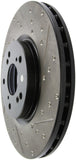 StopTech Drilled and Slotted Sport Rotors are 1-piece direct replacement brake discs for factory brake systems and stock calipers that look great behind your wheels – and offer significantly improved braking performance. The unique cross-drilling and slotting aids with heat and brake dust dispersal, prevents glazing of the pads, adds bite and improves wet and dry braking performance. Built to last, the black e-coating provides protection from corrosion and the high carbon metallurgy (in most applications) offers quieter operation, better crack resistance and increased performance.