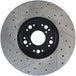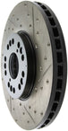 StopTech Drilled and Slotted Sport Rotors are 1-piece direct replacement brake discs for factory brake systems and stock calipers that look great behind your wheels – and offer significantly improved braking performance. The unique cross-drilling and slotting aids with heat and brake dust dispersal, prevents glazing of the pads, adds bite and improves wet and dry braking performance. Built to last, the black e-coating provides protection from corrosion and the high carbon metallurgy (in most applications) offers quieter operation, better crack resistance and increased performance.
