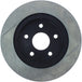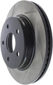 StopTech Slotted Sport Rotors are 1-piece direct replacement brake discs for factory brake systems and stock calipers that look great behind your wheels – and offer significantly improved braking performance. The unique slotting aids with heat and brake dust dispersal, prevents glazing of the pads, adds bite and improves wet and dry braking performance. Built to last, the black e-coating provides protection from corrosion and the high carbon metallurgy (in most applications) offers quieter operation, better crack resistance and increased performance.