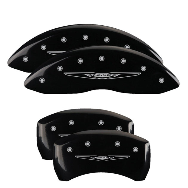 MGP 4 Caliper Covers Engraved Front & Rear Style 1/Chrysler Wing Black finish silver ch