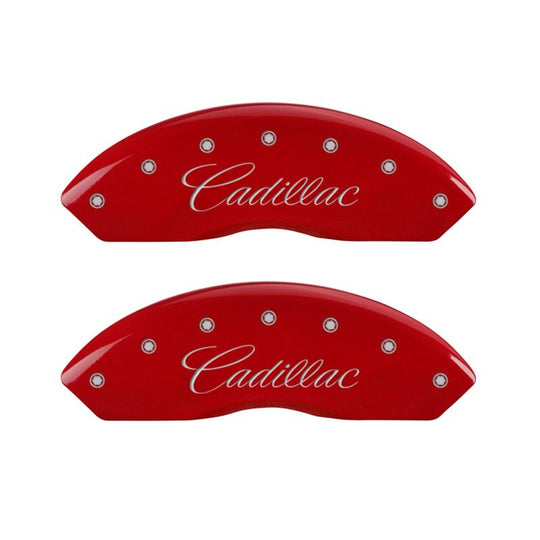 MGP 4 Caliper Covers Engraved Front Cursive/Cadillac Engraved Rear STS Red finish silver ch