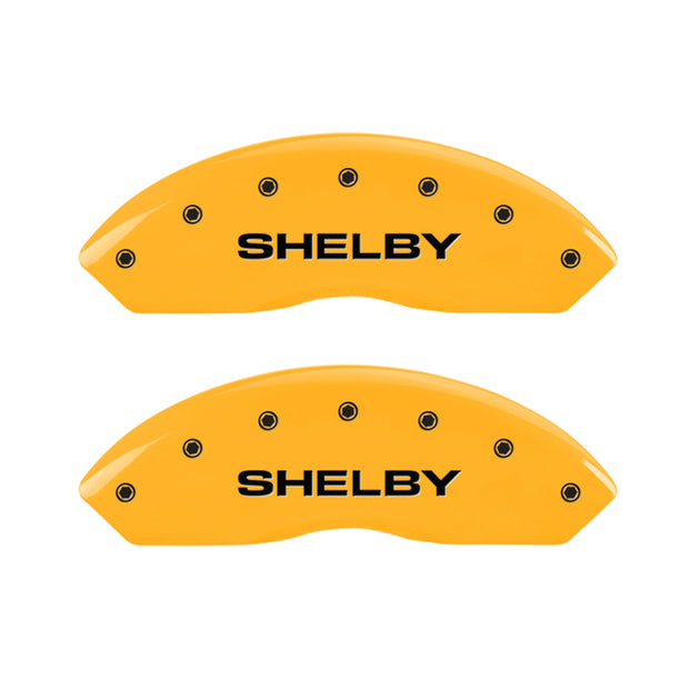 MGP 4 Caliper Covers Engraved Front Shelby Engraved Rear Tiffany Snake Yellow finish black ch