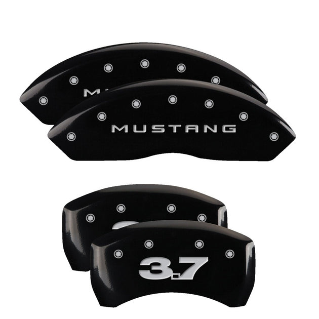 MGP 4 Caliper Covers Engraved Front 2015/Mustang Engraved Rear 2015/50 Black finish silver ch