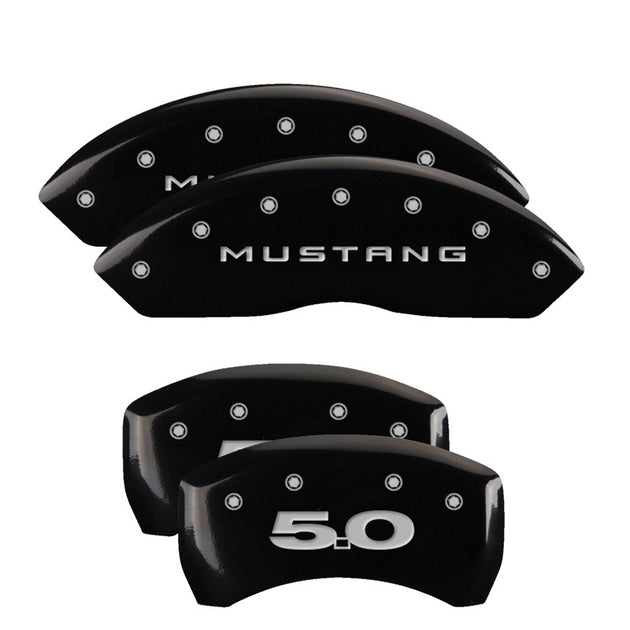 MGP 4 Caliper Covers Engraved Front Mustang Engraved Rear 50 Black finish silver ch