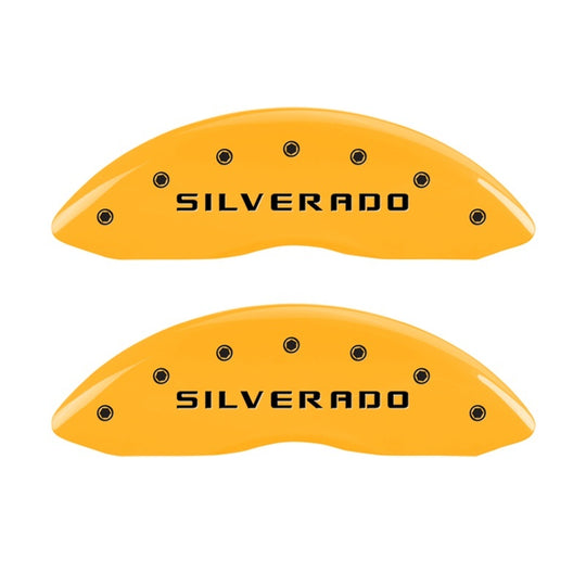 MGP Front set 2 Caliper Covers Engraved Front Silverado Yellow finish black ch