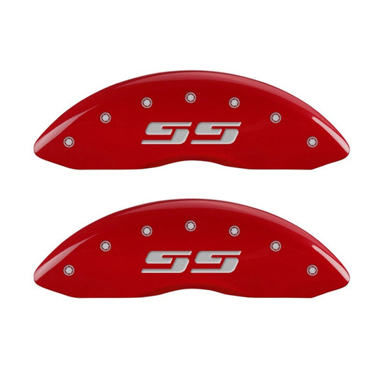 MGP 2 Caliper Covers Eng Front Silverado SS Red Finish Sil Char 2010 Chevy Silverado 1500