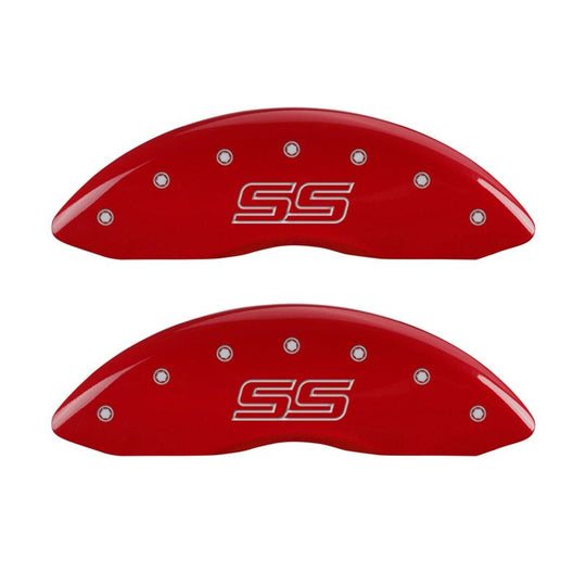 MGP 4 Caliper Covers Engraved Front & Rear Trailblazer style/SS Red finish silver ch