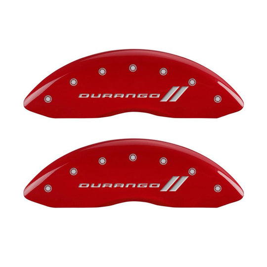 MGP 4 Caliper Covers Engraved Front & Rear With stripes/Durango Red finish silver ch