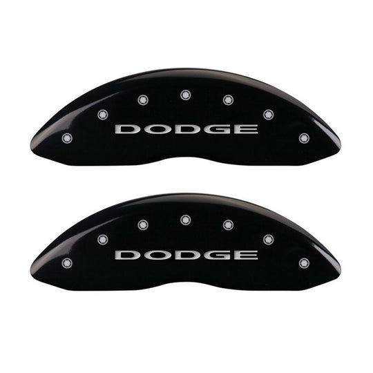 MGP 4 Caliper Covers Engraved Front & Rear With out stripes/Dodge Black finish silver ch