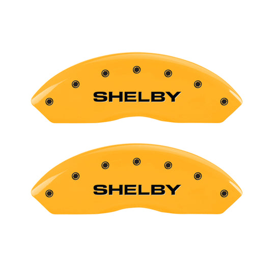 MGP 4 Caliper Covers Engraved Front Shelby Engraved Rear Tiffany Snake Yellow finish black ch