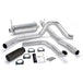 F-250 & F-350 PICKUPS and EXCURSIONS: Banks 4 inch Monster turbo-back stainless steel exhaust features streamlined turbine-outlet pipe, intermediate pipe and tailpipe all formed of stainless, heavy-wall tubing with constant-diameter bends to maximize flow, lower exhaust gas temps and slash backpressure up to 81%. (Available with or without a cast, large-bore Power Elbow housing). Designed to retain stock catalytic converter. The polished-stainless Monster muffler features a straight-through 4 inch diameter flow-path with a Banks-designed expansion chamber to dissipate the annoying mid-range exhaust drone that affects most straight-through designs. The muffler utilizes spun ceramic, very-high-temperature packing, more than doubles stock exhaust flow, and delivers an authoritative - but never intrusive - exhaust sound. And the 5 inch polished rolled-edge tip has an adjustable clamp for positioning on tailpipe. Get it in your choice of chrome-over stainless or high temp black! See this system with the black tip and no Power Elbow. (And to help keep it looking good, there's a 1/2 inch air gap to keep heat from tarnishing the finish). Important: Some vehicle configurations require an extension kit for proper fit. Pickups other than standard-cab long-bed or extended-cab short-bed require Exhaust Extension Kit. Extended Cab Long Bed #53517 required, Crew Cab Short Bed #53516 required, Crew Cab Long Bed #53518 required.