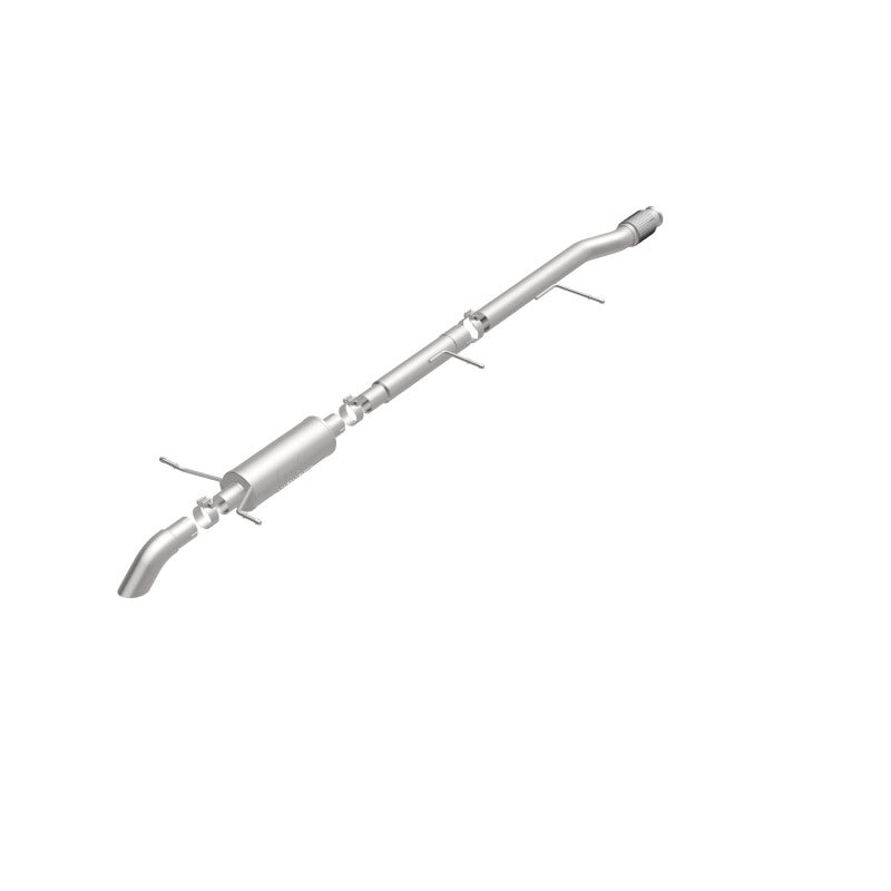 The MagnaFlow Off-Road Pro Series Cat-Back Performance Exhaust System 17146 17146 brings additional off-roading prowess and our deep signature exhaust note to your Truck with a weight-optimized, dyno-tested, corrosion resistant and durable stainless steel design engineered to closely hug the undercarriage for improved ground clearance. Exhaust kit 17146 is engineered to produce Very Aggressive exterior and Aggressive interior sound levels. Extensive 3D scanning was used during the development of this Truck exhaust system to create a direct-fit design, enabling a do-it-yourself installation process. 17146's emissions-legal cat-back design replaces all your truck's exhaust components from the catalytic converter on back with its 3in. diameter mandrel bent main piping that passes through 1 Straight-Through mufflers before ending in a turndown before rear axle exit with 3in. Satin Clamp-On Single Wall Turndown Cut Edge tips. Exhaust system 17146 is produced using advanced CNC precision robotic manufacturing techniques and backed by MagnaFlow's limited lifetime warranty.