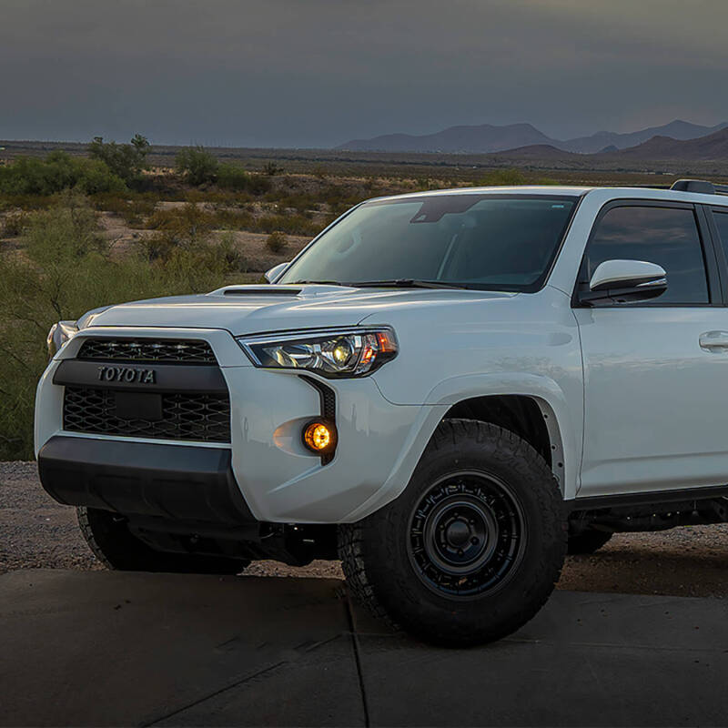 The Toyota Fog Kit by NACHO! This plug n play kit upgrades your vehicle's light package with performance and style and enhances that OEM fitment with all the necessary items needed for a seamless install. Coming in an amber light, the SAE only kit features factory connecters, mounts, and harnessing. The polyester powder coated steel mount fits up to the factory mount threads and utilizes the factory mounting hardware, making these mounts a breeze to install. The branded silicone filler cone surrounds the light and compresses to the factory fog bezel completing the upgrade.