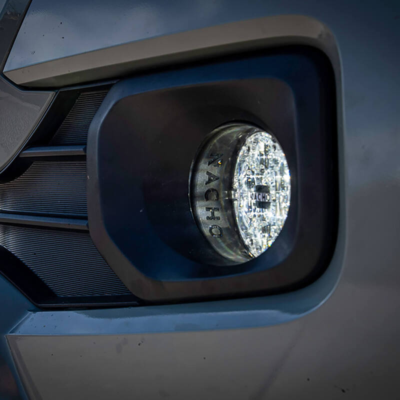 The Toyota Fog Kit by NACHO! This plug n play kit upgrades your vehicle's light package with performance and style and enhances that OEM fitment with all the necessary items needed for a seamless install. Coming in a white light, the SAE only kit features factory connecters, mounts, and harnessing. The polyester powder coated steel mount fits up to the factory mount threads and utilizes the factory mounting hardware, making these mounts a breeze to install. The branded silicone filler cone surrounds the light and compresses to the factory fog bezel completing the upgrade.