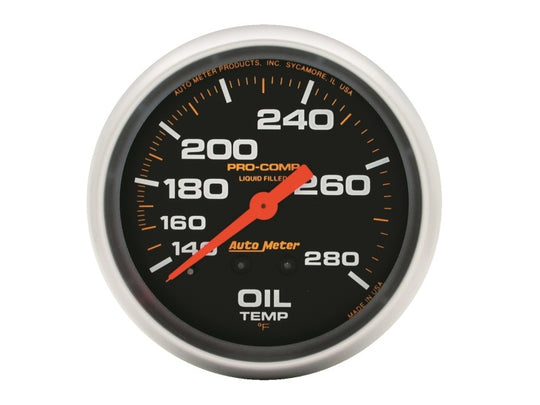 Autometer Liquid Filled Mechanical 66.7mm 140-280 deg F Oil Termperature Gauge Includes 6 ft Tubing