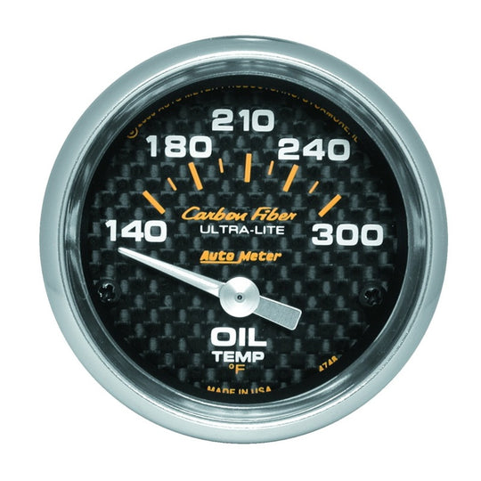 Autometer Carbon Fiber 52mm 140-300 Deg F Electronic Oil Temperature Gauge