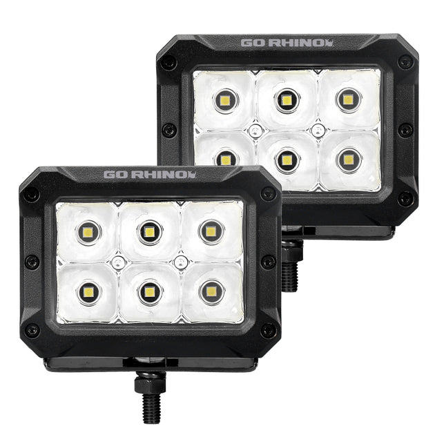 Go Rhino Xplor Bright Series Cube LED Flood Light Kit (Surface/Threaded Stud Mount) 3x3 - Blk (Pair)