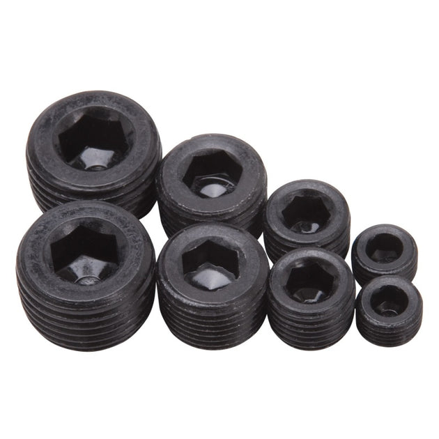 Edelbrock Fittings Pipe Plug Kit Internal Allen Head 1/8In 1/4In 3/8In 1/2In NPT Set of 8 Black