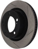StopTech Slotted Sport Rotors are 1-piece direct replacement brake discs for factory brake systems and stock calipers that look great behind your wheels – and offer significantly improved braking performance. The unique slotting aids with heat and brake dust dispersal, prevents glazing of the pads, adds bite and improves wet and dry braking performance. Built to last, the black e-coating provides protection from corrosion and the high carbon metallurgy (in most applications) offers quieter operation, better crack resistance and increased performance.
