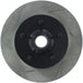 StopTech Slotted Sport Rotors are 1-piece direct replacement brake discs for factory brake systems and stock calipers that look great behind your wheels – and offer significantly improved braking performance. The unique slotting aids with heat and brake dust dispersal, prevents glazing of the pads, adds bite and improves wet and dry braking performance. Built to last, the black e-coating provides protection from corrosion and the high carbon metallurgy (in most applications) offers quieter operation, better crack resistance and increased performance.